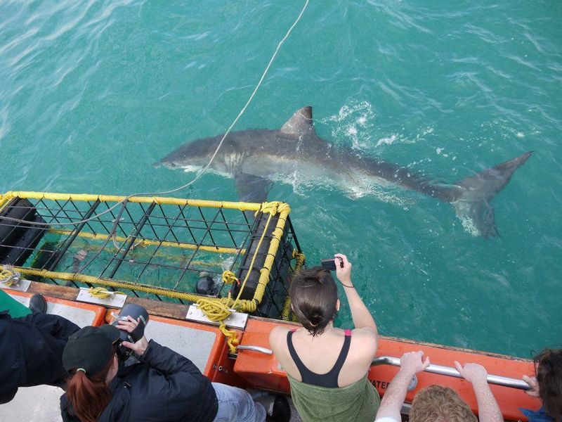 Tijd voor avontuur op het water! Ongeveer 8 km uit de kust van Kleinbaai ligt Dyer Island Nature Reserve, een zeer belangrijk ecologisch reservaat waar zo'n 5000 Afrikaanse pinguins nestelen en op een ander klein eilandje zo'n 60.000 pelsrobben. Deze aanwezigheid trekt roofdieren aan, zoals de grote witte haai. Boek ter plaatse, of vooraf bij Trail Markers, een marine excursie. Hierbij kun je niet alleen walvissen zien (juli-november), maar (meestal) ook witte haaien, dolfijnen, pinguïns, Kaapse zeeleeuwen en duizenden zeevogels. Naast de 'gewone' walvisexcursie is het ook mogelijk een 'cage dive' te maken: veilig in een stalen kooi kun je de witte haaien van dichtbij bekijken. In de middag is er zeker tijd voor nog een ontspannende wandeling door het kustlandschap, zoals het Duiwelsgat Trail of bij De Kelders. Vlak buiten Kleinbaai ligt een pinguïn opvang- en rehabilitatie centrum dat je ook kunt bezoeken. Of het Panthera Africa, een duurzaam werkend opvangcentrum voor leeuwen en andere katten die in gevangenschap zijn geboren.